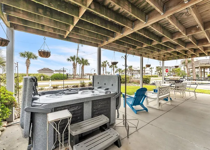 To enjoy your vacation in Myrtle Beach, stay at the spacious 0-bedroom Coastal Camelot - Walk To Surfside Beach Duplex Myrtle Beach, which is about 25 minutes' walk from Surfside Beach Pier and approximately 6 km from MarshWalk. Access to a heated pool ensures a more relaxing stay.